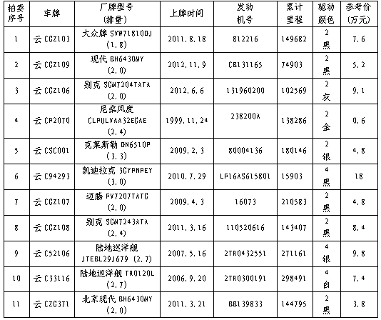 經(jīng)水富縣人民政府批準(zhǔn),公開(kāi)拍賣水富縣國(guó)有資產(chǎn)經(jīng)營(yíng)有限公司公車11輛。以輛為單位拍賣。相關(guān)事項(xiàng)公告如下:
