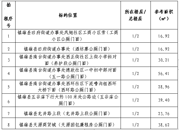 十一、拍租地點:鎮(zhèn)雄縣公租房8-3棟3單元附一樓。